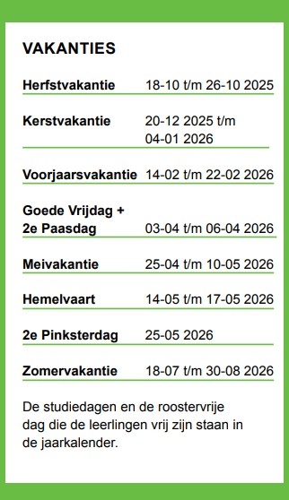 Praktische info Schooltijden Vakantierooster Ziekmelding en verlof Aanmelden nieuwe leerlingen Schoolgids Schoolkalender Downloads & Formulieren Centrum Jeugd en Gezin